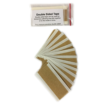 Double-sided tape used to secure heel lifts inside of shoes to prevent slippage or removal. To be considered a permanent solution, not for repeated removal and re-use. For fusing heel lifts together we recommend using our glue. Price is for one packet of 12 pieces approx 2" long.